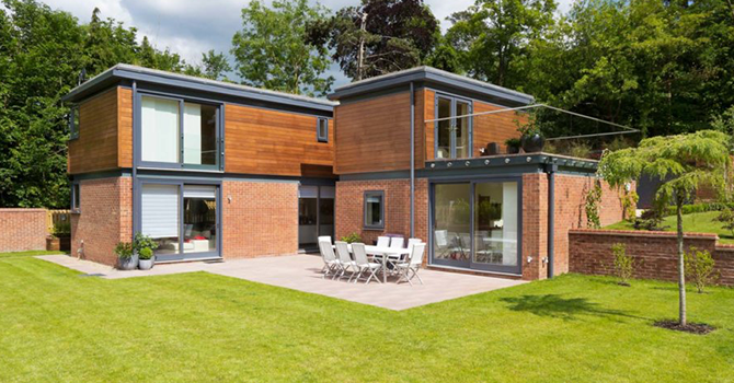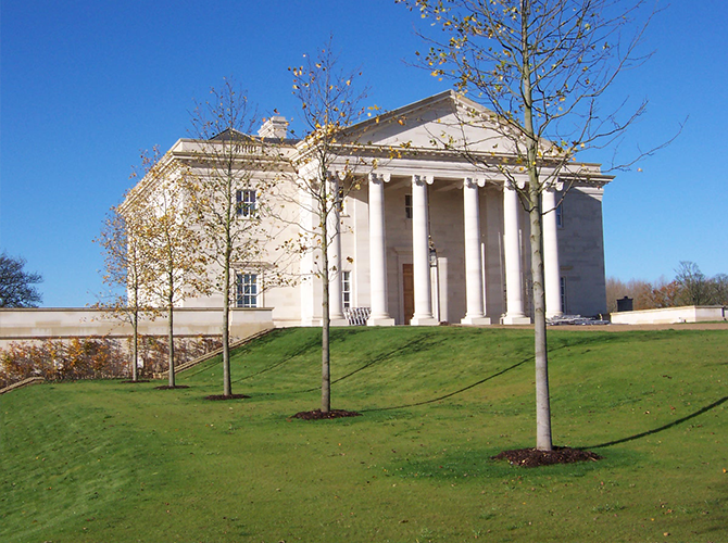 The design for the replacement house in Surrey restored the structure of the estate, reinstating a central focus on the site of the original mansion, which was destroyed by fire in 1953.